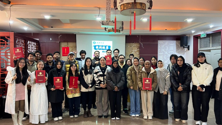 一等奖获得者越南籍阮云英(NGUYEN VAN ANH)同学将个人在中国的经历与中国古典诗词演唱巧妙融合,凭借独特的表演赢得满堂喝彩。二等奖获得者毛里塔尼亚籍穆萨(DIYAH MOHAMED SALEM),以标准的发音深情朗诵中国古诗词,展现了扎实的语言功底;越南籍武氏黄玲(VO THI HOANG LINH),生动讲述初遇保定雪景的喜悦,并现场展示了精巧的剪纸艺术;巴基斯坦籍卡西夫(KASHIF),以质朴的语言回顾自己在河大校园的成长经历,真挚情感动人心弦。三等奖获得者武忠福(VO TRONG PHUC)、何氏燕(HA THI YEN)、武依原(VO Y NGUYEN)、阿姆纳(AMNA)、安妮莎(ANEESA)或以茶艺呈现东方美学的雅致,或以武术演绎中华文化的刚柔之美,展现了对中国传统文化的热爱。此外,还有四名同学获得优秀奖。在颁奖环节,获奖选手依次上台领取荣誉证书并与评委合影留念,现场掌声不断。最后,谢红梅在总结发言中表示:“今晚我们见证了文化的交流与心灵的共鸣。选手们用真挚的情感与多样的才艺,诠释了对中华文化的理解与热爱。希望大家继续保持这份热情,在河北大学的舞台上书写更多精彩篇章。”