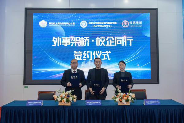 河北天德实业集团有限公司(中国国际白沟跨境电商基地)董事长邵海涛对市外事办和河北大学国际交流与教育学院的支持表示感谢,并称:“将以此次携手为起点,共同打造一个‘校企协同、育用结合、赋能未来’的合作典范,让教育的力量助推产业走向世界,让产业的活水反哺教育深耕未来。”