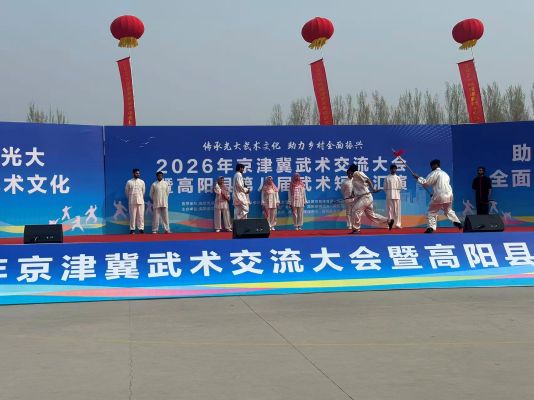 3月28日,2026年京津冀武术交流大会暨高阳县第八届武术短拳汇演在高阳县庞口集英学校操场圆满落下帷幕。京津冀三地武术爱好者齐聚高阳,同台展演、切磋交流,上演了一场精彩纷呈、气势磅礴的传统武术盛宴,充分展现了中华武术的独特魅力与高阳武术之乡的深厚底蕴。国际交流与教育学院党总支书记梁卫格、河北大学武协总教练段书兴率武协国际队13名留学生参加此次活动。