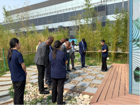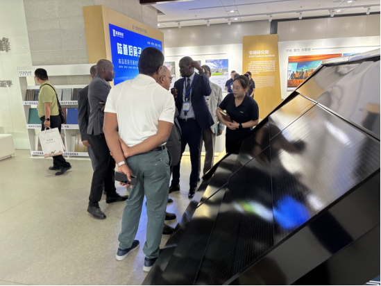 在英利集团,代表团首先参观了第13代BIPV示范建筑荷花楼及将太阳能发电技术与传统声屏障相结合的光伏声屏障,在英利公司展厅并体验了光伏产品的应用,详细了解了英利集团的发展历程、核心技术以及光伏产品的多样化应用场景。之后,代表团与英利集团人员进行了交流座谈,代表团对中国在可再生能源领域的成就表示高度赞赏,愿与英利集团就新能源领域的科研项目开展合作,并与英利集团人员就努瓦克肖特大学校园光伏发电项目进行了交流。