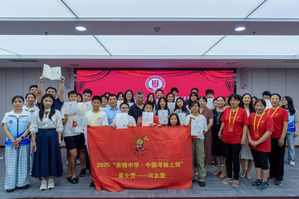 7月13日下午,由中国侨联主办,河北省侨联承办,保定市侨联、河北大学协办的2025年“亲情中华·中国寻根之旅”青少年夏令营(保定营)结营仪式在河北大学主楼302报告厅隆重举行。河北省侨联陈志、保定市侨联党组书记、主席王保新、河北大学党委统战部常务副部长王瑞、国际交流与教育学院院长闫屹、国际交流与教育学院师生代表,以及来自美国的26名华裔青少年营员和领队老师共同参加了结营仪式。