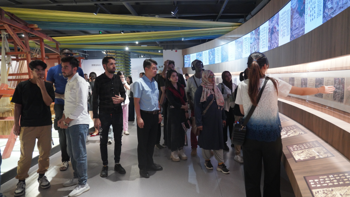 在巾巾乐道产业育城中心,留学生们被融合传统文化与现代科技的创新纺织产品吸引,如“会唱昆曲”的文创毛巾和“黑科技变色毛巾”。随后,大家走进棉花图纺织博物馆,通过实物展陈和织造体验,深入了解高阳作为“中国纺织之乡”的历史脉络。此外,留学生们还观摩了延福屯冀中笙管乐和常氏太清拳等非遗展演,并参与互动体验,感受中国传统文化的魅力。
