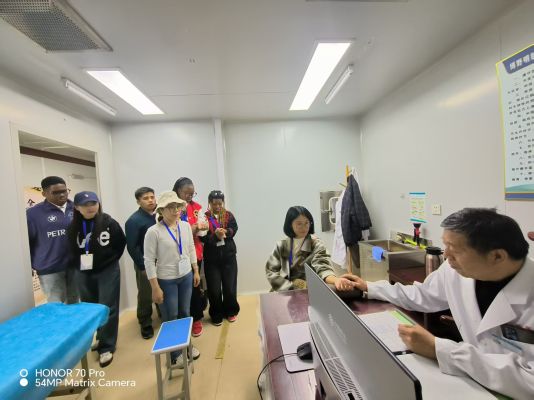 随后,留学生走进河北大学国际交流与教育学院“国际中文教育实践与推广基地”的共建单位—博野明德医院。在古色古香的中药房,留学生看着种类繁多的中药材,闻着淡淡的药香,真切地感受到中医药的博大精深。同学们观看中医门诊诊疗,亲眼见证针灸、理疗的神奇技法,从望闻问切的诊疗智慧到古法中药的独特魅力,每一处细节都让留学生惊叹不已。